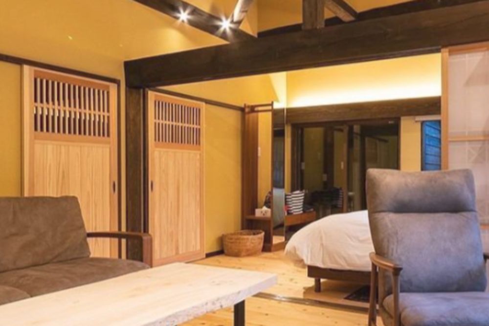 当施設は古民家をリフォームした1日1組限定の一棟貸し高級宿泊施設で、田無瀬バスターミナルから徒歩1分、かりこぼうず大橋から徒歩4分の好立地です。